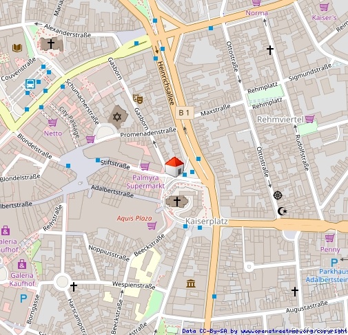 Im Südosten der Innenstadt von Aachen liegt der Kaiserplatz an der Kreuzung des Alleenrings aus der Eifel kommenden Adalbertsteinweg, dem Zubringer Monheimsallee/Peterstraße und Heinrichsallee und dem Adalbertstift in Richtung Fußgängerzone Adalbertstraße/Stiftstraße. Die Parkhäuser im Aquis Plaza und in der Stiftstraße liegen unmittelbarer nachbarschft zur Liegenschaft.